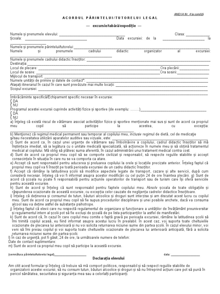 Declaratie Acord Parinti Excursie Doc