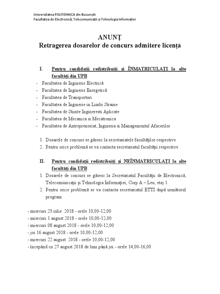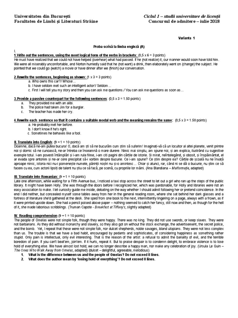 Universitatea Din București Facultatea De Limbi Si Literaturi Străine Concursul De Admitere Iulie 2018