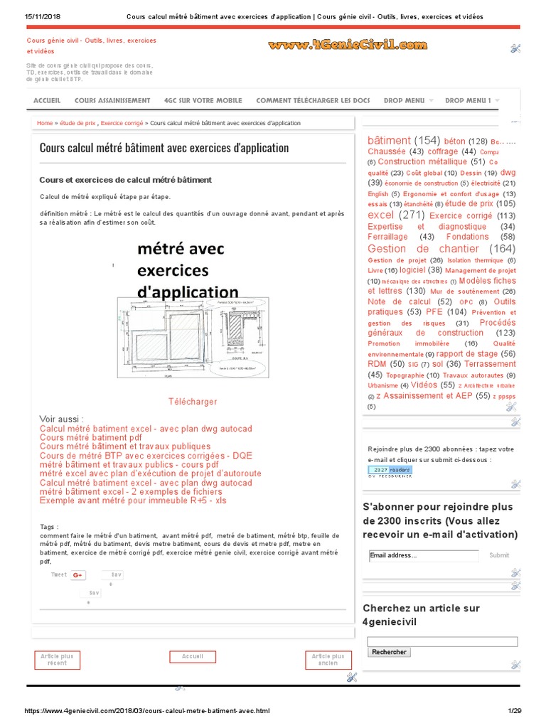 Cours Et Exercices De Calcul Metre Batiment Autocad Microsoft Excel