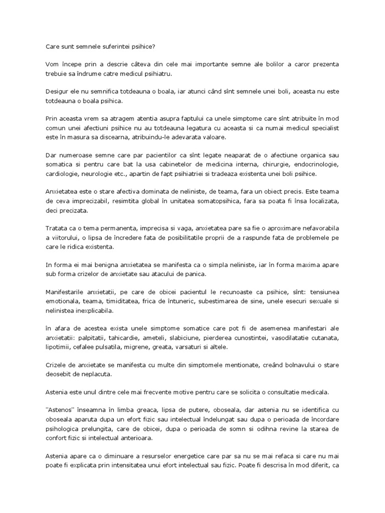 Principalele Boli Psihice Simptome și Cauze
