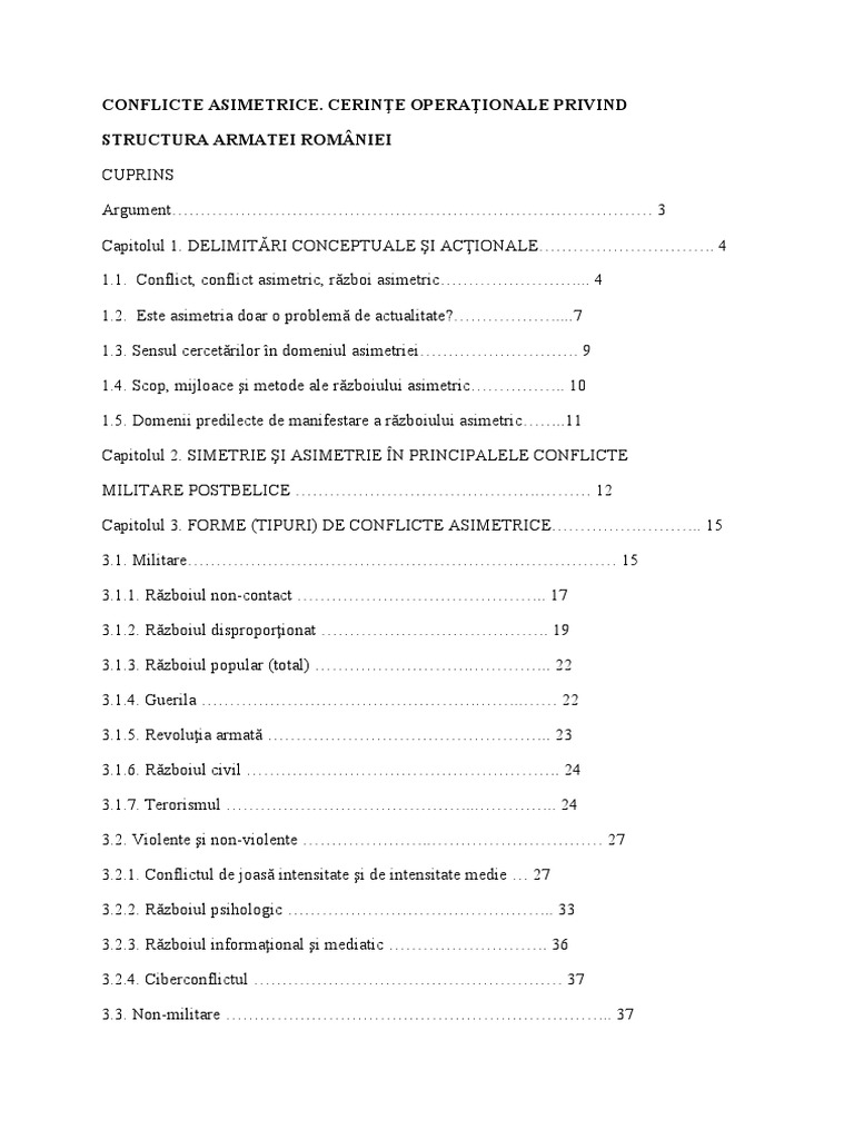 Conflicte Asimetrice Cerinţe Operaţionale Privind Structura Armatei Romaniei