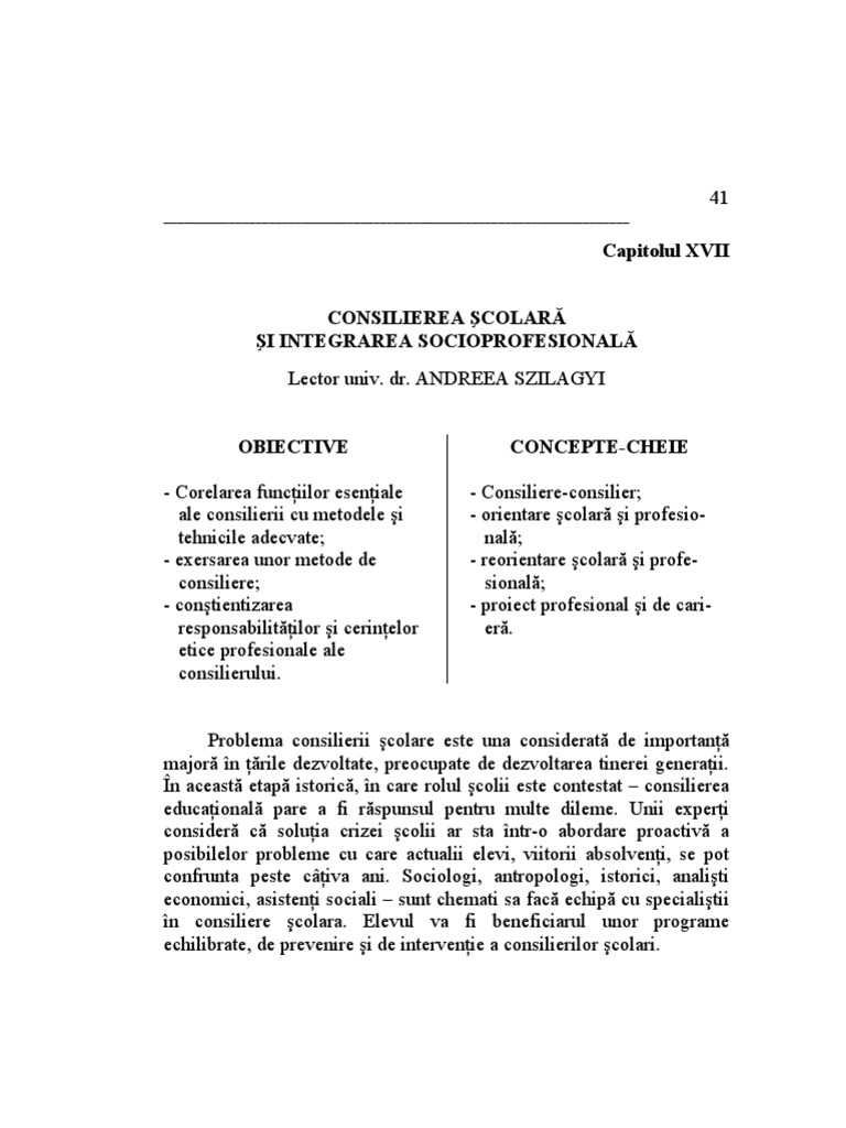 Consiliere Scolara Si Asistenta Psihopedagogica