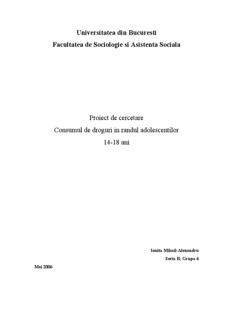 Consumul De Droguri In Randul Adolescentilor 14 18 Ani Proiect De Cercetare Redactare Licente