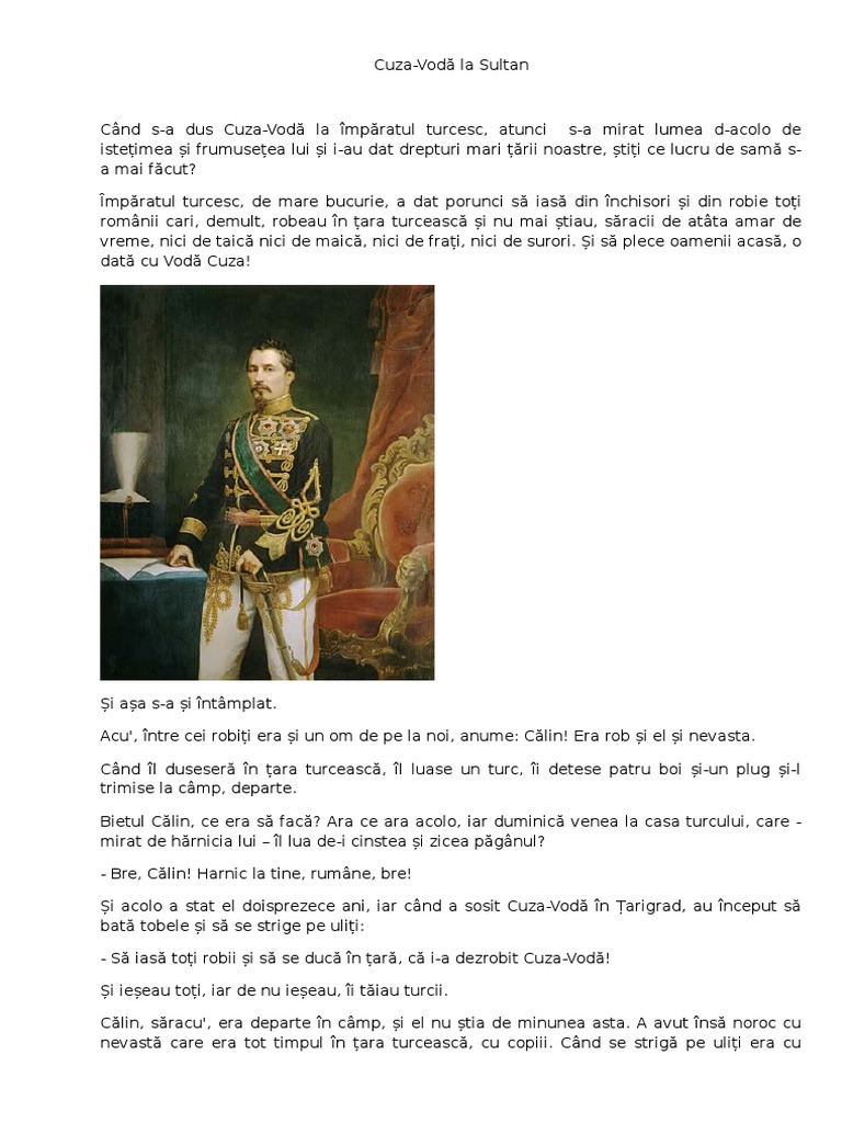 Cuza Vodă La Sultan Din Legendele Romanilor Jurnal Spiritual