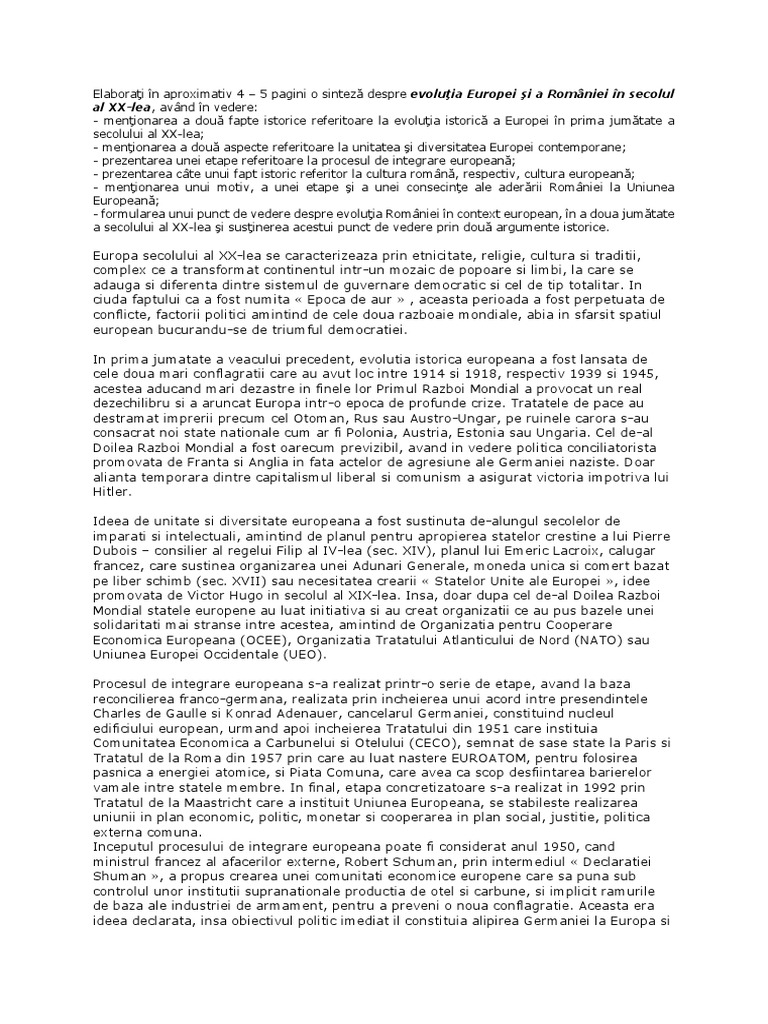 Evoluţia Europei Si A Romaniei In Secolul Al Xx Lea Docx