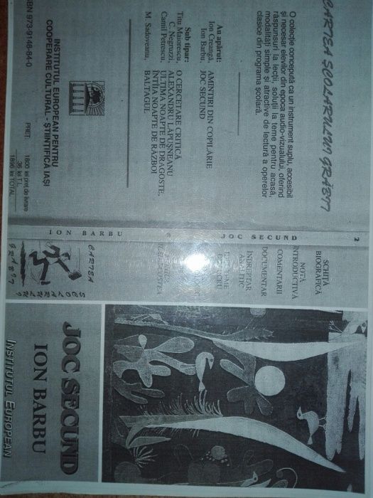 Poezii Joc Secund De Ion Barbu Iasi Olx Ro