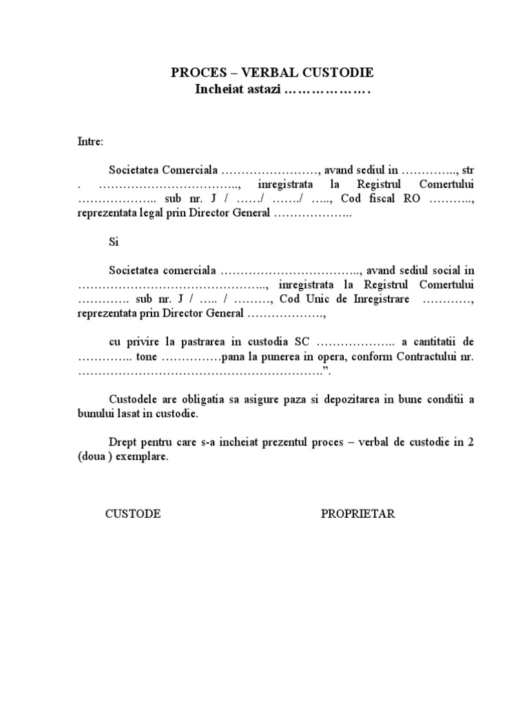 Proces Verbal De Custodie Model
