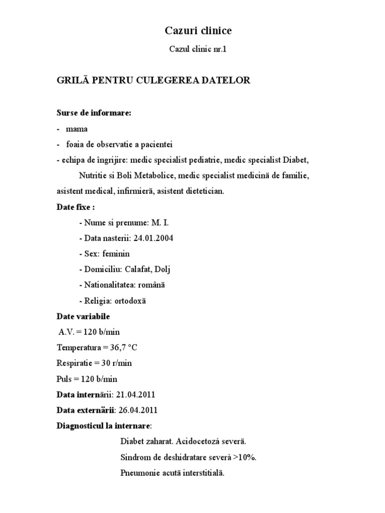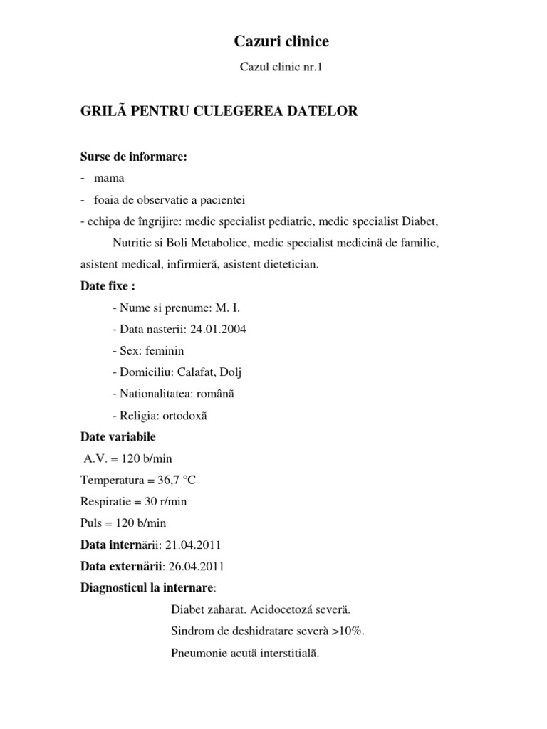 Proiect Studiu De Caz Nursing Pacient Diabet Tip 1 Medicina 380181