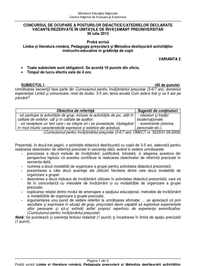 Titularizare Suplinire Definitivat Si Grade Didactice 2020 Subiecte Titularizare Iulie 2011 Limba Romana Educatori