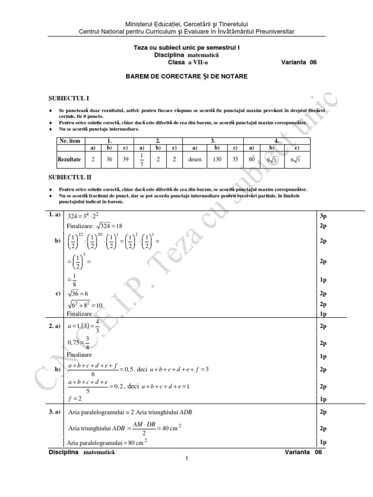 Teza Matematica Clasa 7 Sem 1 Rezolvata Varianta 1